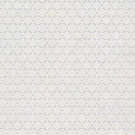 This fabric features a delicate and elegant cream base adorned with a subtle geometric pattern of small, evenly spaced dots forming a chain-like design in a soft blue hue. The pattern provides a modern yet timeless appeal, making it versatile for various sewing projects, from fashion to home decor, offering a sophisticated touch to any creation.